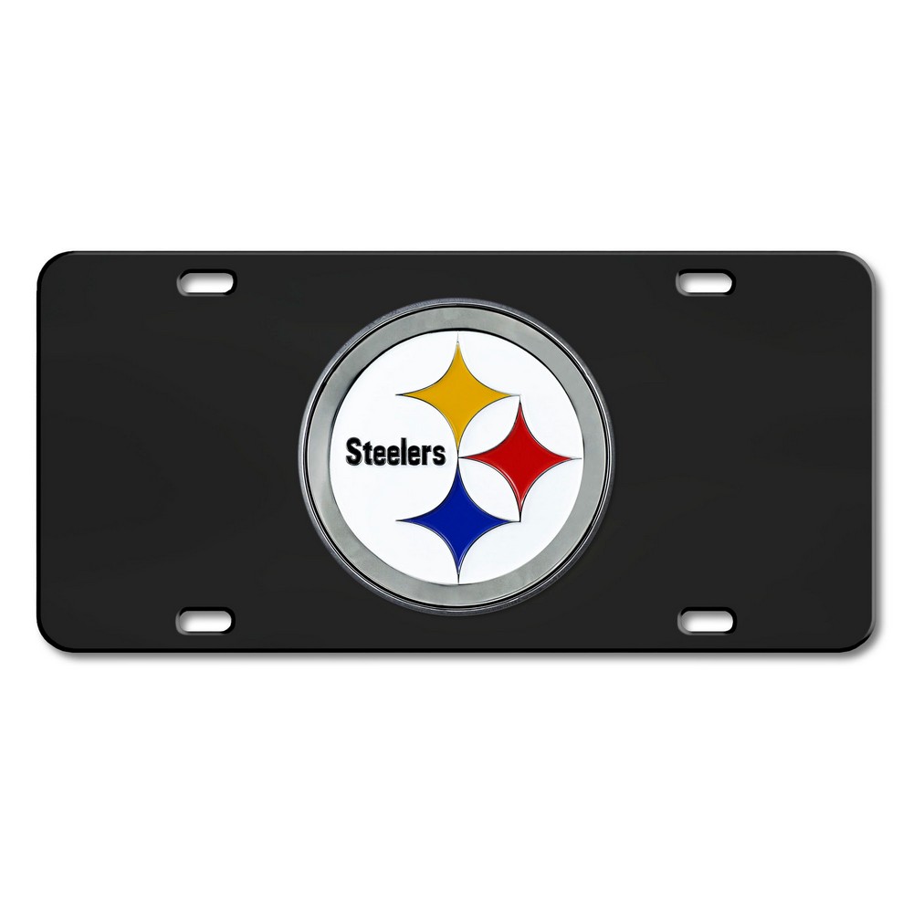 | Pittsburgh Steelers 3D Black License Plate Made of stainless steel with a durable finish that resists the elements Vibrant colors that last Easy to install 4 pre-drilled holes ensure a safe and secure fit, plus no rattling noises while driving Apply standard vehicle wax to keep license plate looking great for years to come Officially licensed true team colors NFL - Pittsburgh Steelers in Pennsylvania NFL National Football League |