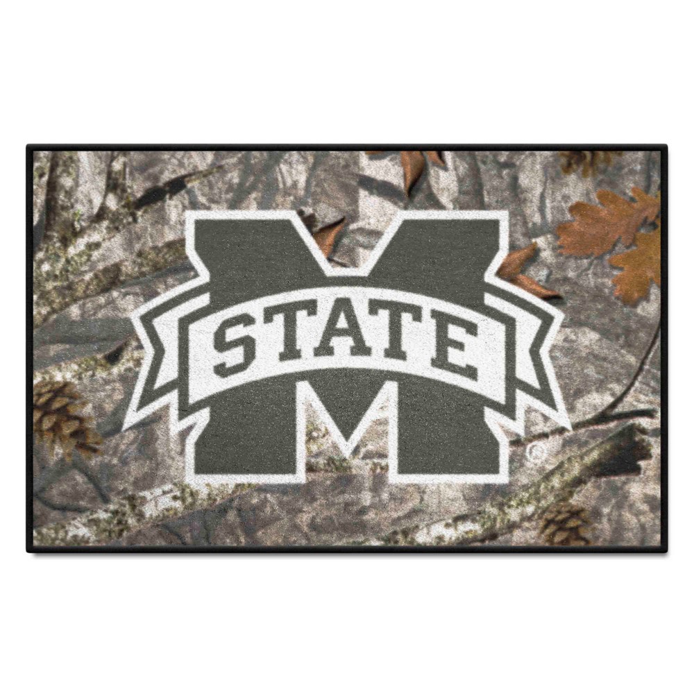 | Mississippi State Bulldogs Camo Starter Mat Accent Rug - 19in. x 30in. 9 Ounce, 100 % Nylon Face Recycled vinyl backing for a durable and longer-lasting product Machine made and tufted in the USA Non-skid backing with serged borders for added durability Machine washable; vacuum regularly and spot clean for any easy and quick clean Officially licensed and chromojet-printed in true team colors for vibrant, lasting color Mississippi State University in Mississippi |
