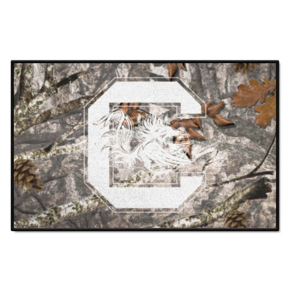 | South Carolina Gamecocks Camo Starter Mat Accent Rug - 19in. x 30in. 9 Ounce, 100 % Nylon Face Recycled vinyl backing for a durable and longer-lasting product Machine made and tufted in the USA Non-skid backing with serged borders for added durability Machine washable; vacuum regularly and spot clean for any easy and quick clean Officially licensed and chromojet-printed in true team colors for vibrant, lasting color University of South Carolina in South Carolina |