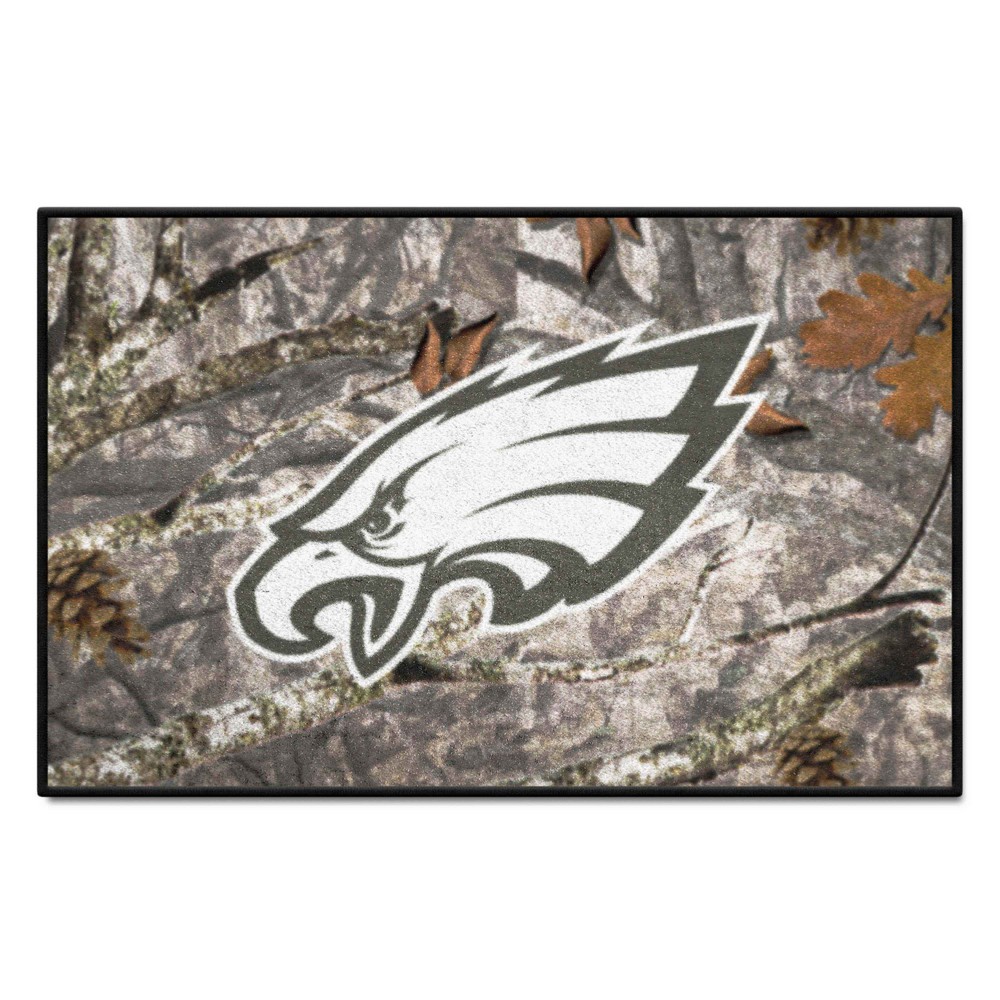 | Philadelphia Eagles Camo Starter Mat Accent Rug - 19in. x 30in. 9 Ounce, 100 % Nylon Face Recycled vinyl backing for a durable and longer-lasting product Machine made and tufted in the USA Non-skid backing with serged borders for added durability Machine washable; vacuum regularly and spot clean for any easy and quick clean Officially licensed and chromojet-printed for vibrant, lasting color NFL - Philadelphia Eagles in Pennsylvania NFL National Football League |