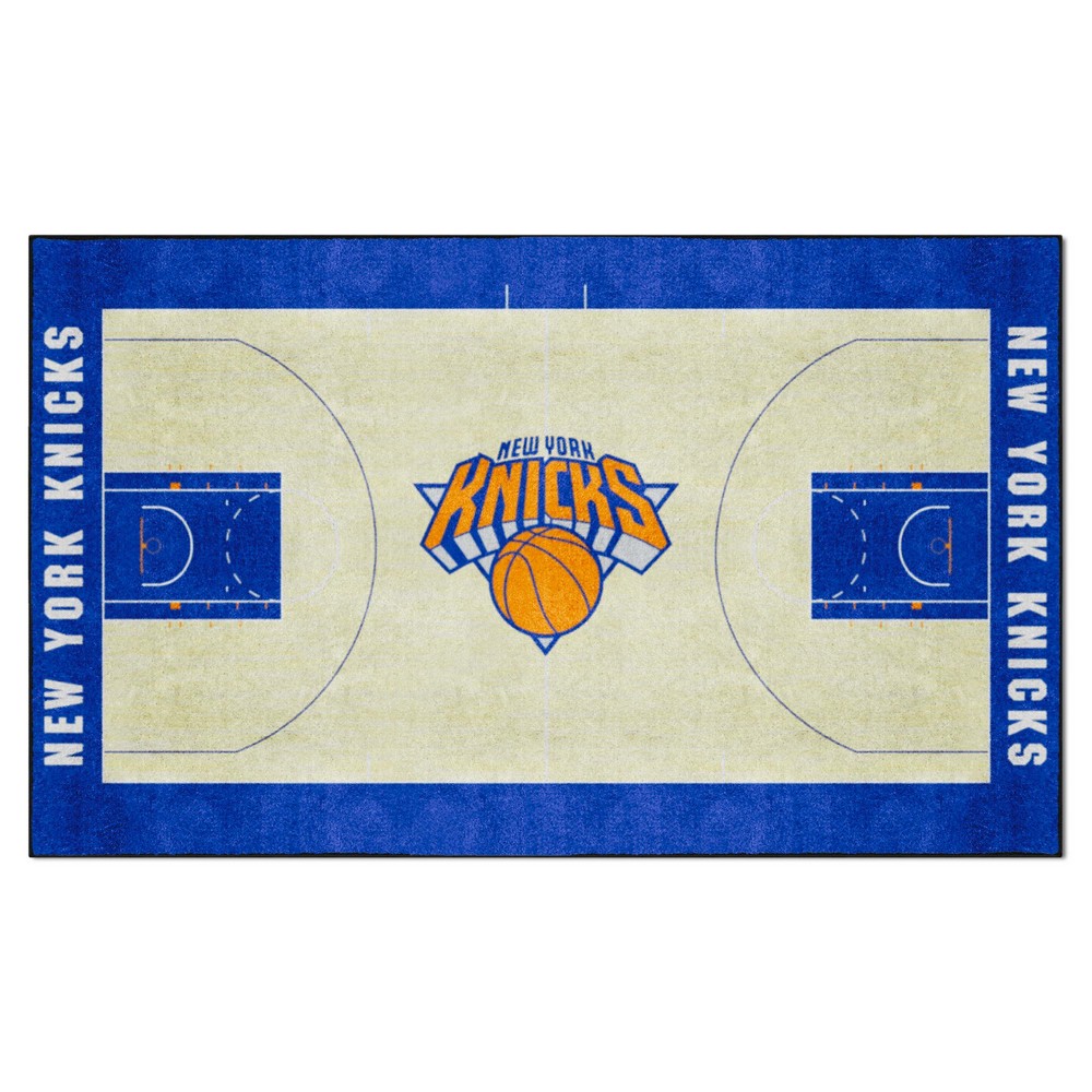 | New York Knicks 6 ft. x 10 ft. Plush Area Rug 23.5 oz., 100% Nylon Face Latex backing for a durable and longer-lasting product Machine made in the USA Non-skid backing to ensure stability Vacuum regularly and spot clean Chromojet-printed in true team colors NBA - New York Knicks in New York NBA National Basketball Association |