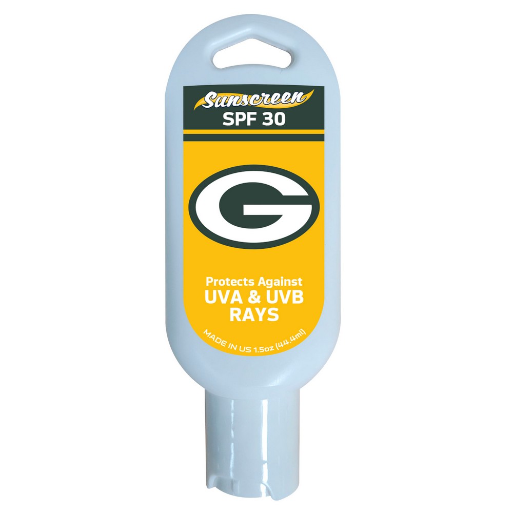 | Green Bay Packers 1.5oz SPF 30 Sunscreen 1.5 oz (44.4mL) travel size Contains SPF 30 for protection against UVA & UVB rays Water and Sweat Resistant 80 Minutes Easy open pop-top Citrus-Coconut Scent Made in the USA NFL - Green Bay Packers in Wisconsin NFL National Football League |