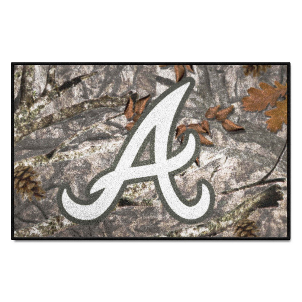 | Atlanta Braves Camo Starter Mat Accent Rug - 19in. x 30in. 9 Ounce, 100 % Nylon Face Recycled vinyl backing for a durable and longer-lasting product Machine made and tufted in the USA Non-skid backing with serged borders for added durability Machine washable; vacuum regularly and spot clean for any easy and quick clean Officially licensed and chromojet-printed in true team colors for vibrant, lasting color MLB - Atlanta Braves in Georgia MLB Major League Baseball |