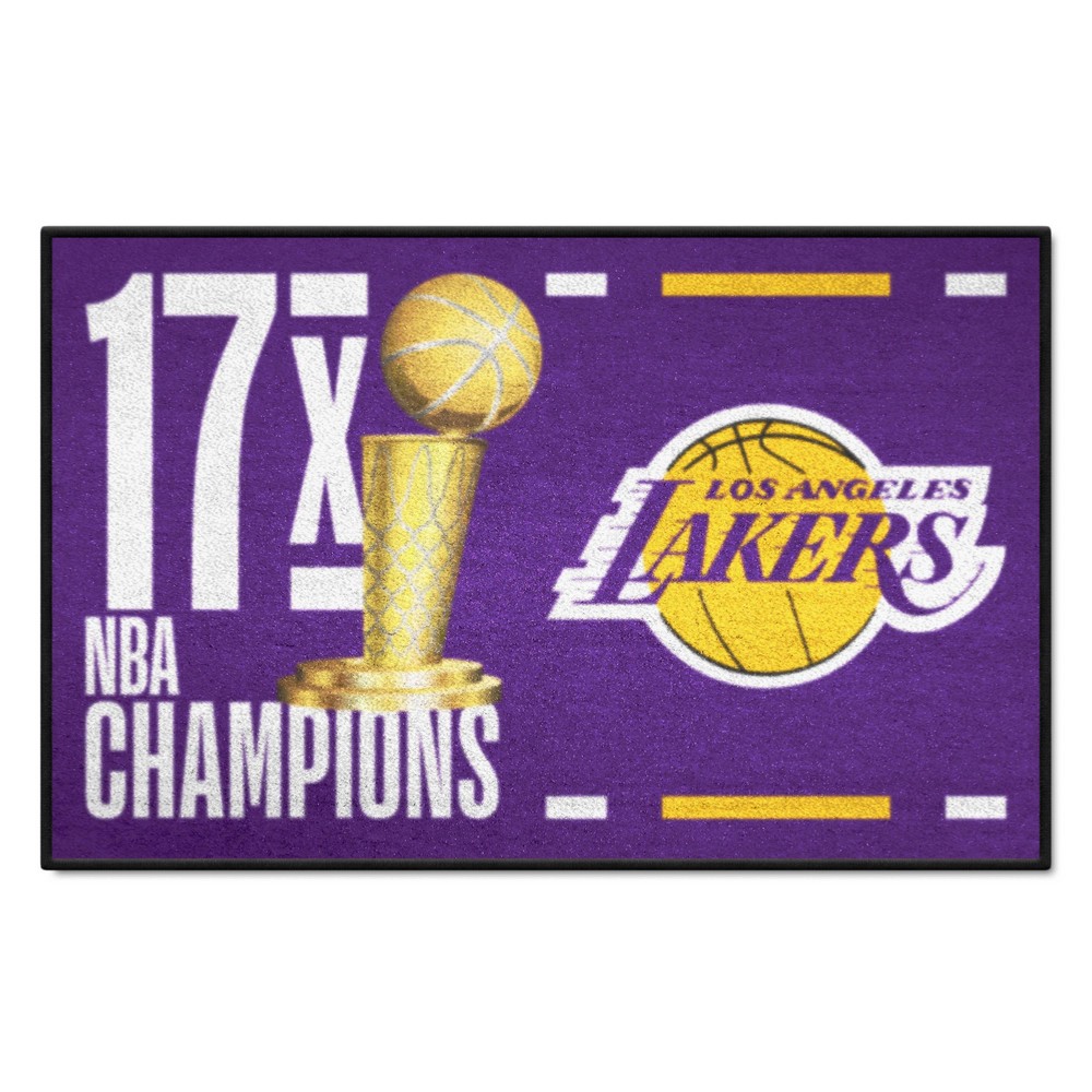 | Los Angeles Lakers Dynasty Starter Mat Accent Rug - 19in. x 30in. 9 Ounce, 100 % Nylon Face Recycled vinyl backing for a durable and longer-lasting product Machine made and tufted in the USA Non-skid backing with serged borders for added durability Machine washable; vacuum regularly and spot clean for any easy and quick clean Officially licensed and chromojet-printed in true team colors for vibrant, lasting color NBA - Los Angeles Lakers in California NBA National Basketball Association |