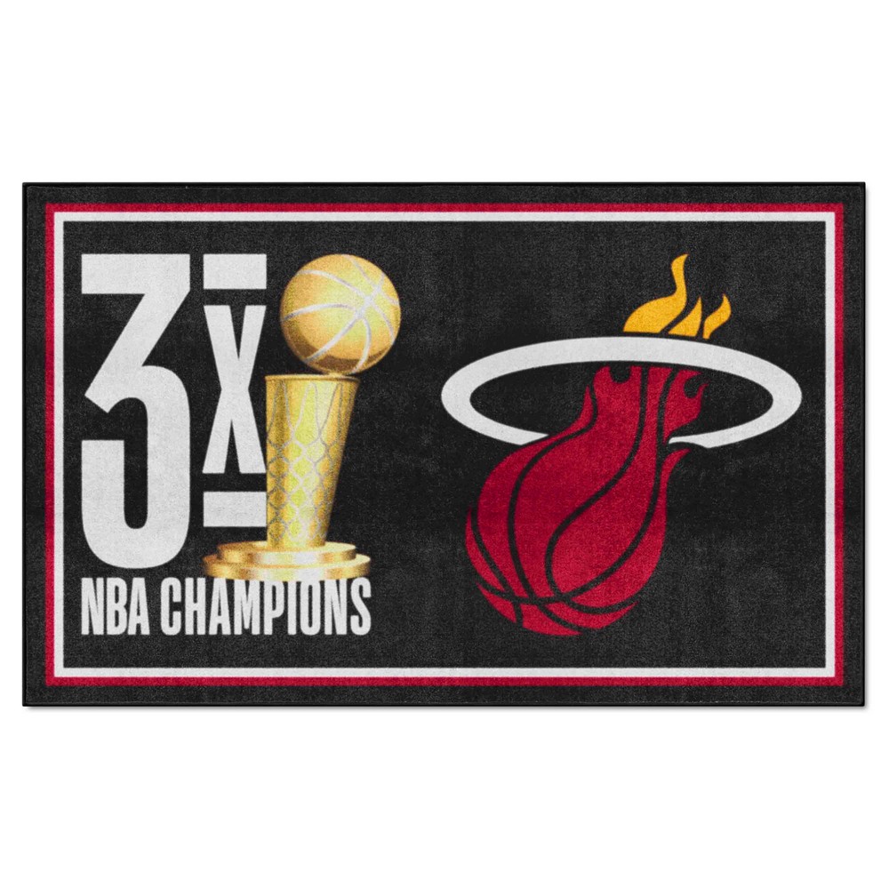 | Miami Heat Dynasty 5ft. x 8ft. Plush Area Rug 23.5 oz., 100% Nylon Face Latex backing for a durable and longer-lasting product Machine made in the USA Non-skid backing to ensure stability Vacuum regularly and spot clean Chromojet-printed in true team colors NBA - Miami Heat in Florida NBA National Basketball Association |
