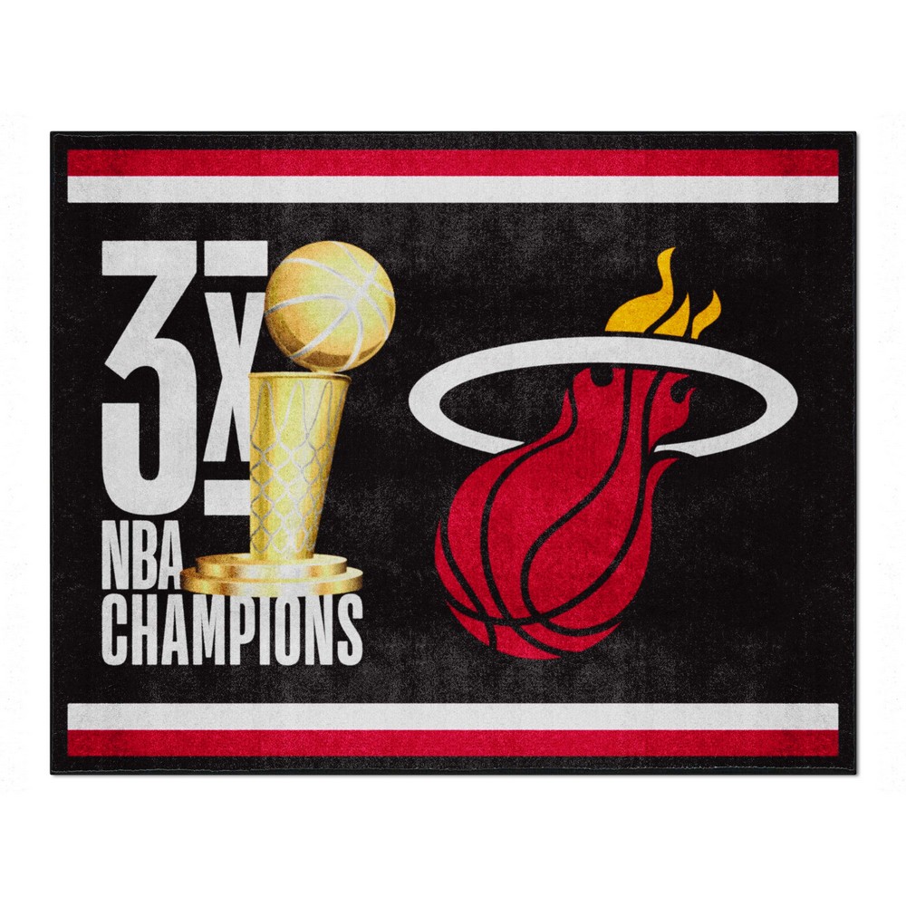 | Miami Heat Dynasty 8ft. x 10ft. Plush Area Rug 23.5 oz., 100% Nylon Face Latex backing for a durable and longer-lasting product Machine made in the USA Non-skid backing to ensure stability Vacuum regularly and spot clean Chromojet-printed in true team colors NBA - Miami Heat in Florida NBA National Basketball Association |