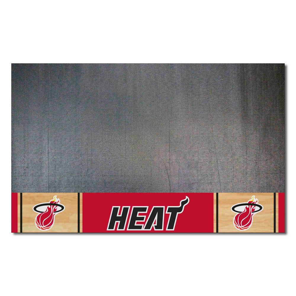 | NBA Retro Miami Heat Vinyl Grill Mat - 26in. x 42in. Made of 100% vinyl Universal size - fits under most grills Prevents spills from soaking in and staining Oil, flame, and UV resistant Non-skid surface keeps grill in place Easily cleaned with a water hose NBAV - Miami Heat in Florida NBA National Basketball Association |