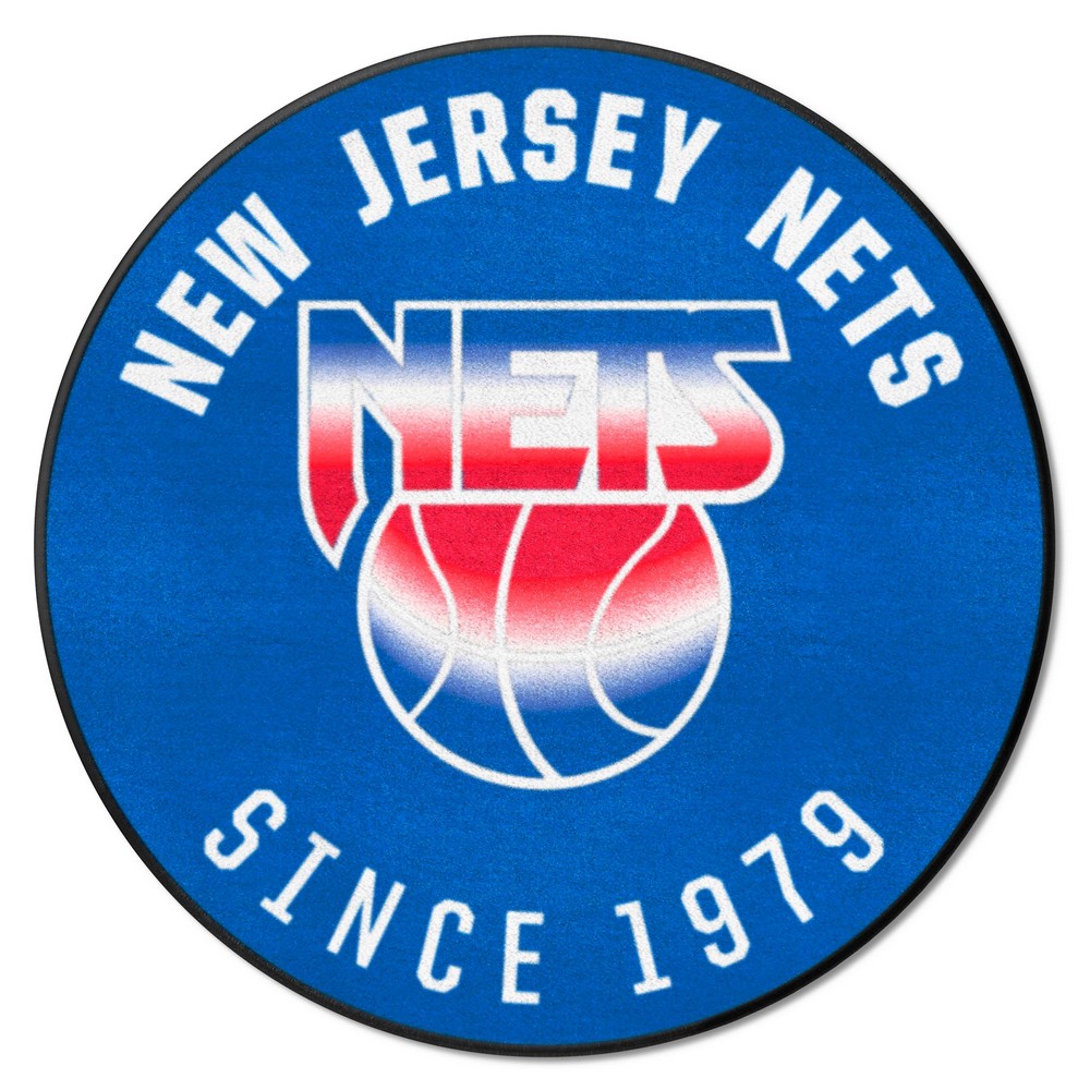 | NBA Retro New Jersey Nets Roundel Rug - 27in. Diameter 9 Ounce, 100 % Nylon Face Recycled vinyl backing for a durable and longer-lasting product Machine made and tufted in the USA Non-skid backing with taped borders for added durability Machine washable; vacuum regularly and spot clean for any easy and quick clean Officially licensed and chromojet-printed in true team colors for vibrant, lasting color NBAV - New Jersey Nets in New Jersey NBA National Basketball Association |