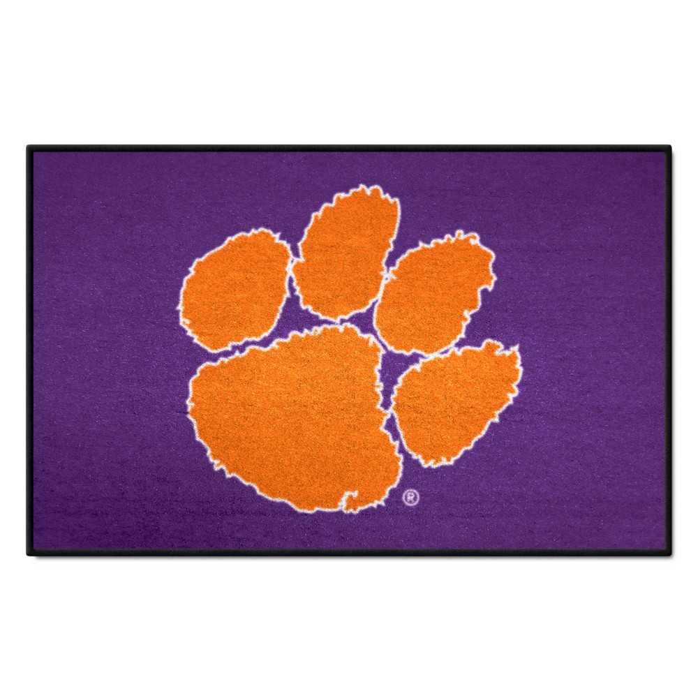 | Clemson Tigers Starter Mat Accent Rug, Purple - 19in. x 30in. 9 Ounce, 100 % Nylon Face Recycled vinyl backing for a durable and longer-lasting product Machine made and tufted in the USA Non-skid backing with serged borders for added durability Machine washable; vacuum regularly and spot clean for any easy and quick clean Officially licensed and chromojet-printed in true team colors for vibrant, lasting color Clemson University in South Carolina |