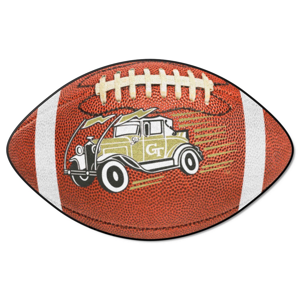 | Georgia Tech Yellow Jackets Football Rug - 20.5in. x 32.5in. 9 Ounce, 100 % Nylon Face Recycled vinyl backing for a durable and longer-lasting product Machine made and tufted in the USA Non-skid backing with taped borders for added durability Machine washable; vacuum regularly and spot clean for any easy and quick clean Officially licensed and chromojet-printed in true team colors for vibrant, lasting color Georgia Tech in Georgia |