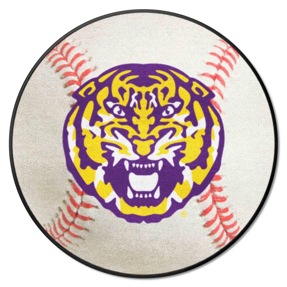 | LSU Tigers Baseball Rug - 27in. Diameter 9 Ounce, 100 % Nylon Face Recycled vinyl backing for a durable and longer-lasting product Machine made and tufted in the USA Non-skid backing with taped borders for added durability Machine washable; vacuum regularly and spot clean for any easy and quick clean Officially licensed and chromojet-printed in true team colors for vibrant, lasting color Louisiana State University in Louisiana |