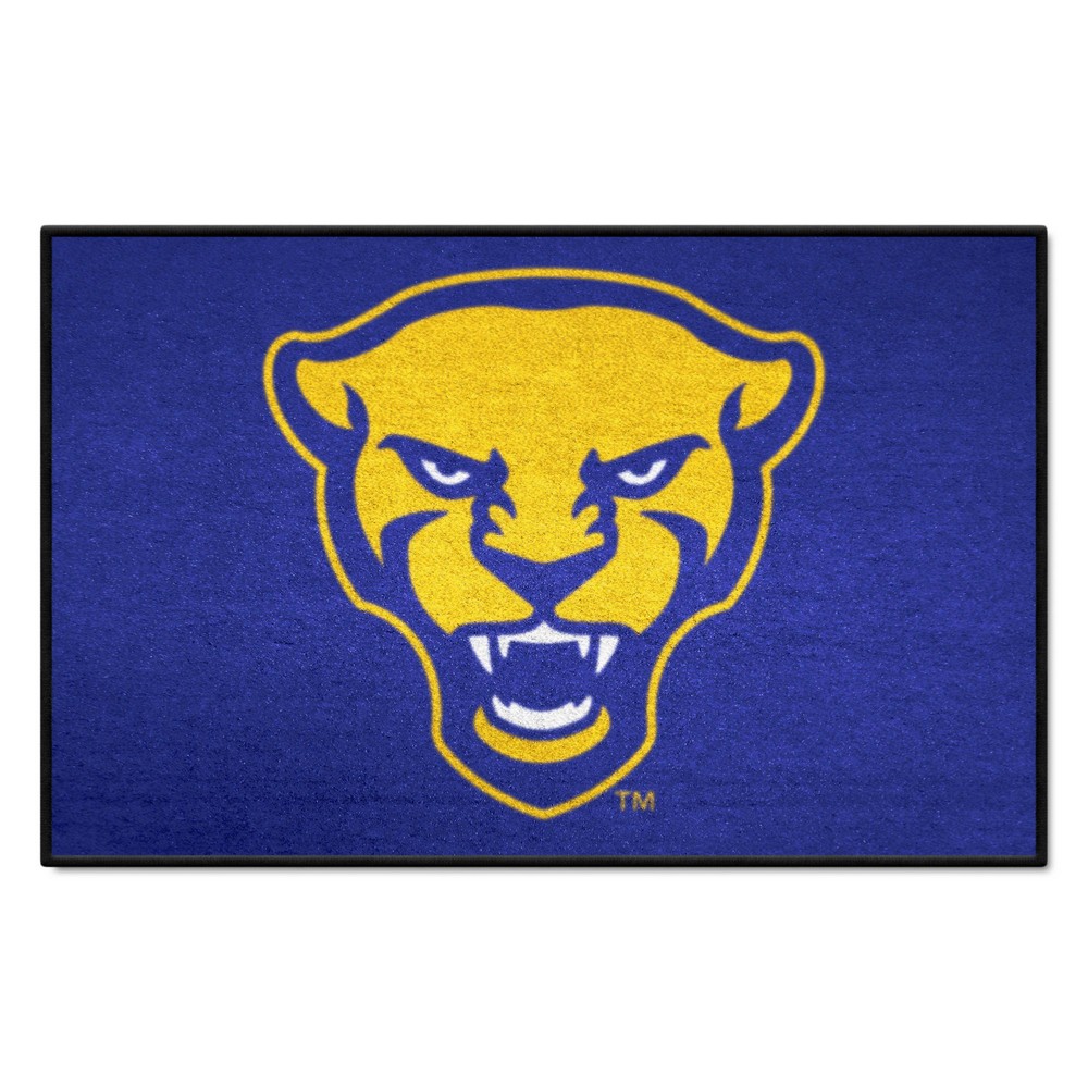 | Pitt Panthers Starter Mat Accent Rug, Panther Logo - 19in. x 30in. 9 Ounce, 100 % Nylon Face Recycled vinyl backing for a durable and longer-lasting product Machine made and tufted in the USA Non-skid backing with serged borders for added durability Machine washable; vacuum regularly and spot clean for any easy and quick clean Officially licensed and chromojet-printed in true team colors for vibrant, lasting color University of Pittsburgh in Pennsylvania |