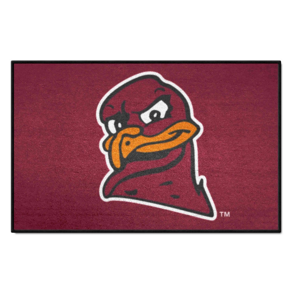 | Virginia Tech Hokies Starter Mat Accent Rug, Hokie Bird Logo - 19in. x 30in. 9 Ounce, 100 % Nylon Face Recycled vinyl backing for a durable and longer-lasting product Machine made and tufted in the USA Non-skid backing with serged borders for added durability Machine washable; vacuum regularly and spot clean for any easy and quick clean Officially licensed and chromojet-printed in true team colors for vibrant, lasting color Virginia Tech in Virginia |