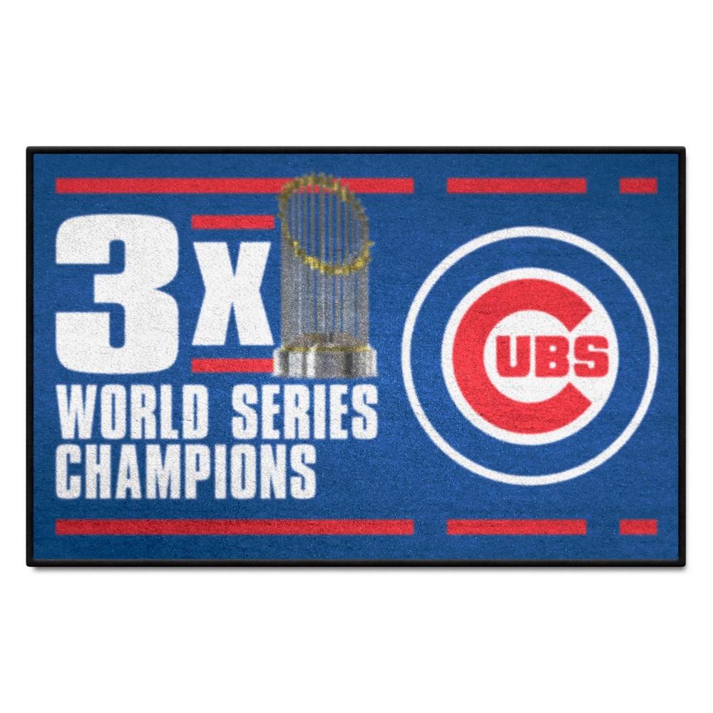| Chicago Cubs Dynasty Starter Mat Accent Rug - 19in. x 30in. 9 Ounce, 100 % Nylon Face Recycled vinyl backing for a durable and longer-lasting product Machine made and tufted in the USA Non-skid backing with serged borders for added durability Machine washable; vacuum regularly and spot clean for any easy and quick clean Officially licensed and chromojet-printed in true team colors for vibrant, lasting color MLB - Chicago Cubs in Illinois MLB Major League Baseball |