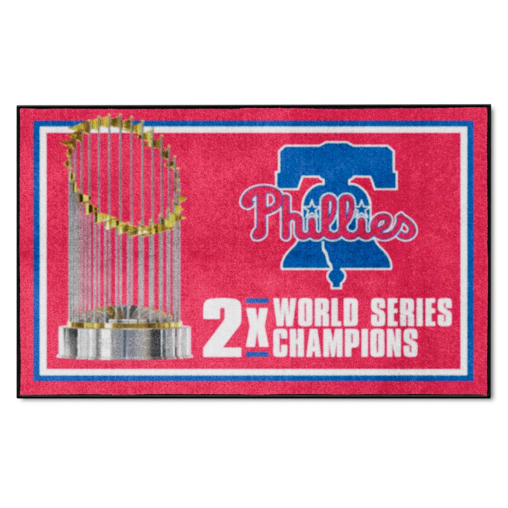 | Philadelphia Phillies Dynasty 4ft. x 6ft. Plush Area Rug 23.5 oz., 100% Nylon Face Latex backing for a durable and longer-lasting product Machine made in the USA Non-skid backing to ensure stability Vacuum regularly and spot clean Chromojet-printed in true team colors MLB - Philadelphia Phillies in Pennsylvania MLB Major League Baseball |