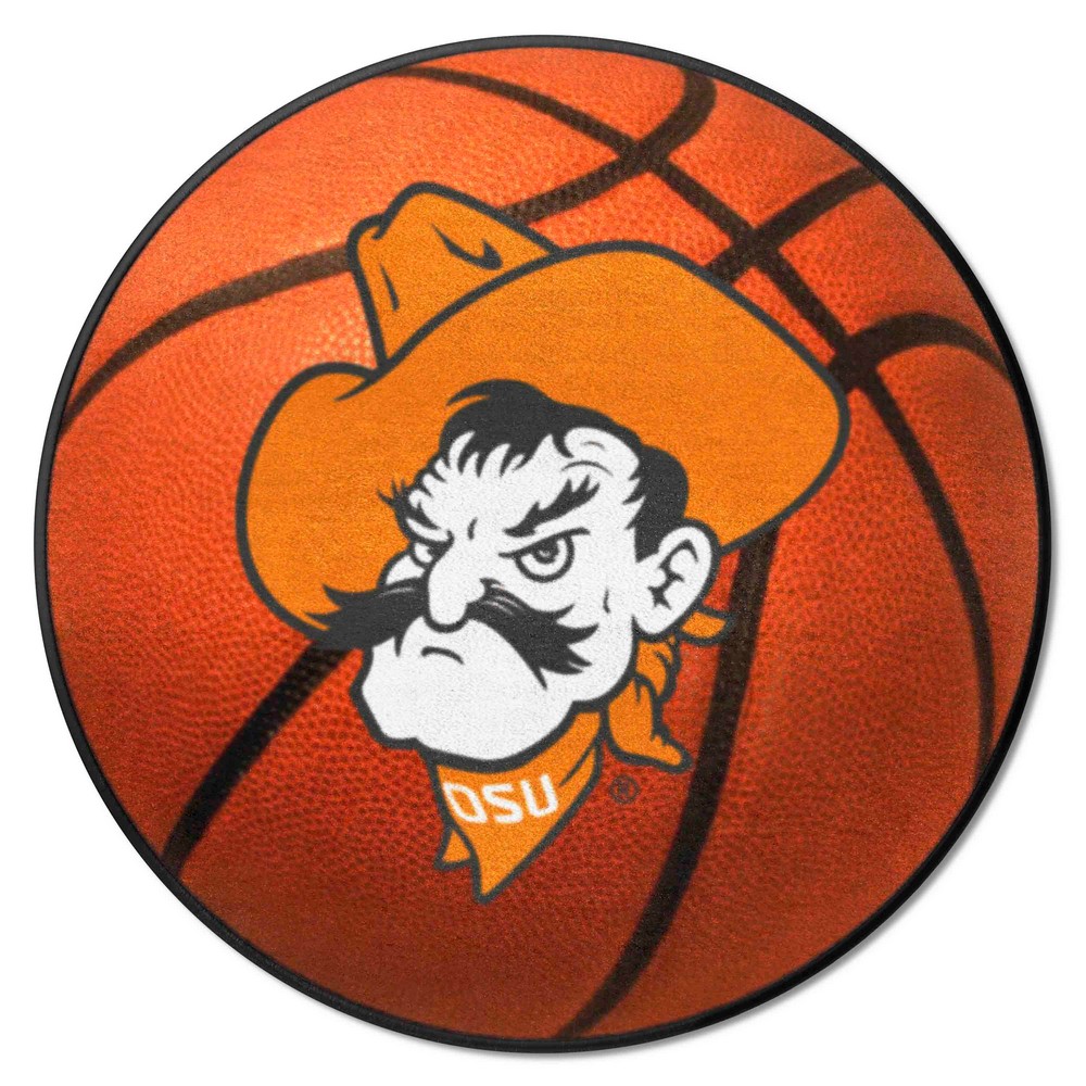 | Oklahoma State Cowboys Basketball Rug - 27in. Diameter 9 Ounce, 100 % Nylon Face Recycled vinyl backing for a durable and longer-lasting product Machine made and tufted in the USA Non-skid backing with taped borders for added durability Machine washable; vacuum regularly and spot clean for any easy and quick clean Officially licensed and chromojet-printed in true team colors for vibrant, lasting color Oklahoma State University in Oklahoma |