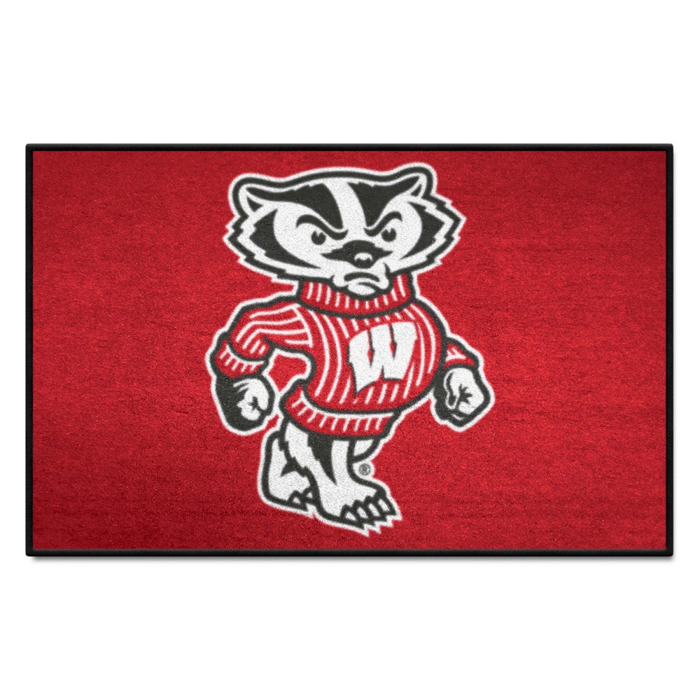 | Wisconsin Badgers Starter Mat Accent Rug - 19in. x 30in. 9 Ounce, 100 % Nylon Face Recycled vinyl backing for a durable and longer-lasting product Machine made and tufted in the USA Non-skid backing with serged borders for added durability Machine washable; vacuum regularly and spot clean for any easy and quick clean Officially licensed and chromojet-printed in true team colors for vibrant, lasting color University of Wisconsin in Wisconsin |