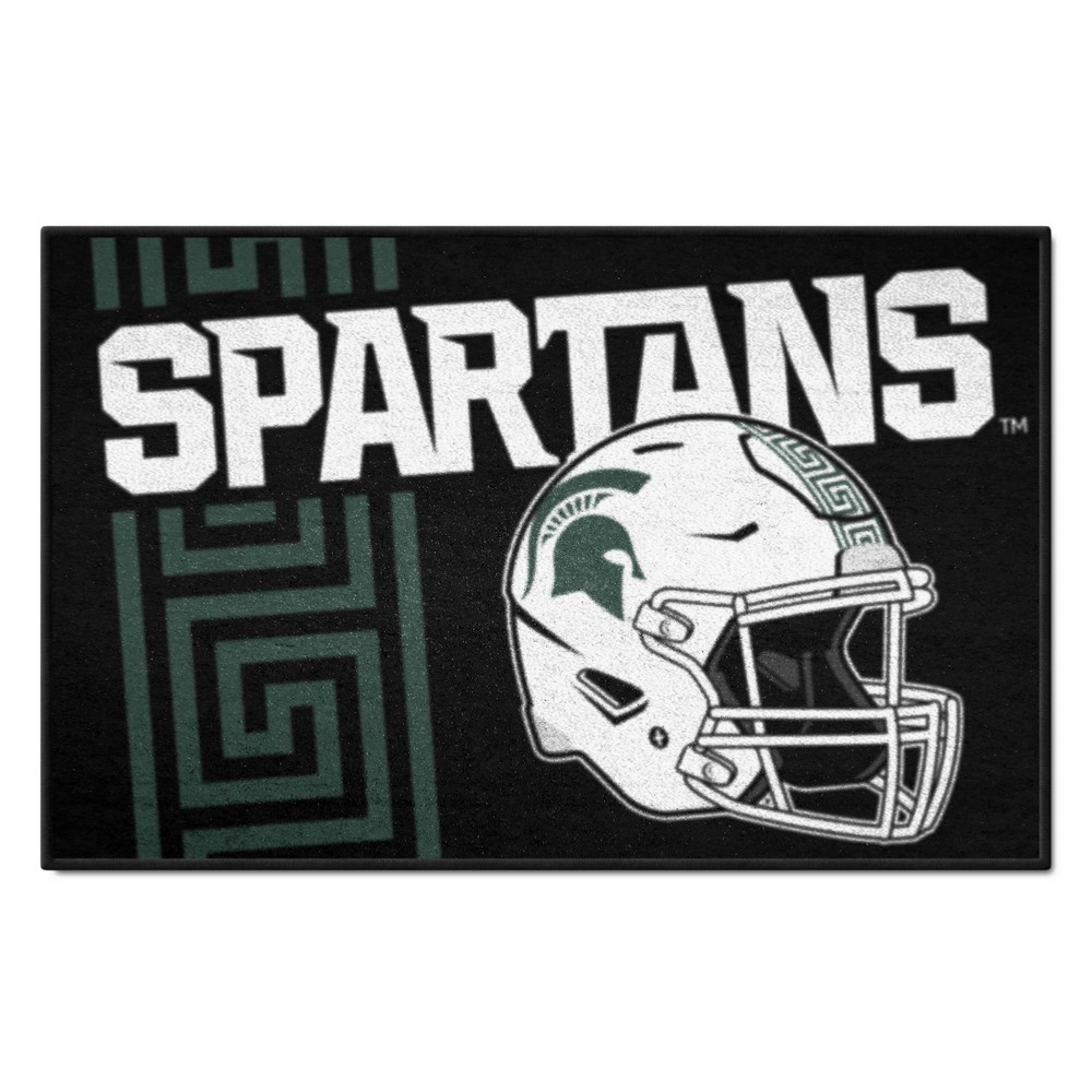 | Michigan State Spartans Starter Mat Accent Rug - 19in. x 30in., Uniform Design 9 Ounce, 100 % Nylon Face Recycled vinyl backing for a durable and longer-lasting product Machine made and tufted in the USA Non-skid backing with serged borders for added durability Machine washable; vacuum regularly and spot clean for any easy and quick clean Officially licensed and chromojet-printed in true team colors for vibrant, lasting color Michigan State University in Michigan |
