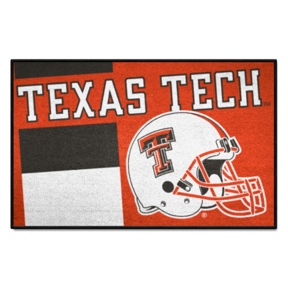 | Texas Tech Red Raiders Starter Mat Accent Rug - 19in. x 30in., Uniform Design 9 Ounce, 100 % Nylon Face Recycled vinyl backing for a durable and longer-lasting product Machine made and tufted in the USA Non-skid backing with serged borders for added durability Machine washable; vacuum regularly and spot clean for any easy and quick clean Officially licensed and chromojet-printed in true team colors for vibrant, lasting color Texas Tech University in Texas |