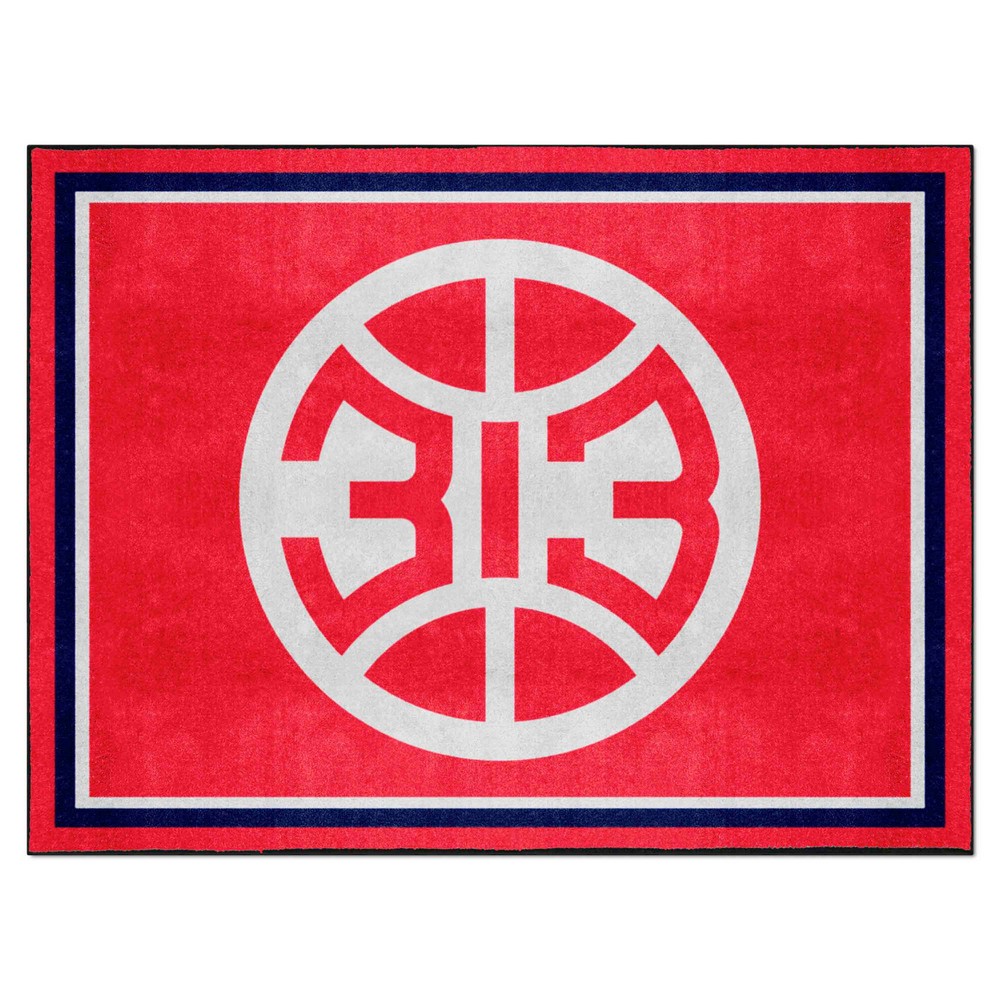 | Detroit Pistons 8ft. x 10 ft. Plush Area Rug 23.5 oz., 100% Nylon Face Latex backing for a durable and longer-lasting product Machine made in the USA Non-skid backing to ensure stability Vacuum regularly and spot clean Chromojet-printed in true team colors NBA - Detroit Pistons in Michigan NBA National Basketball Association |