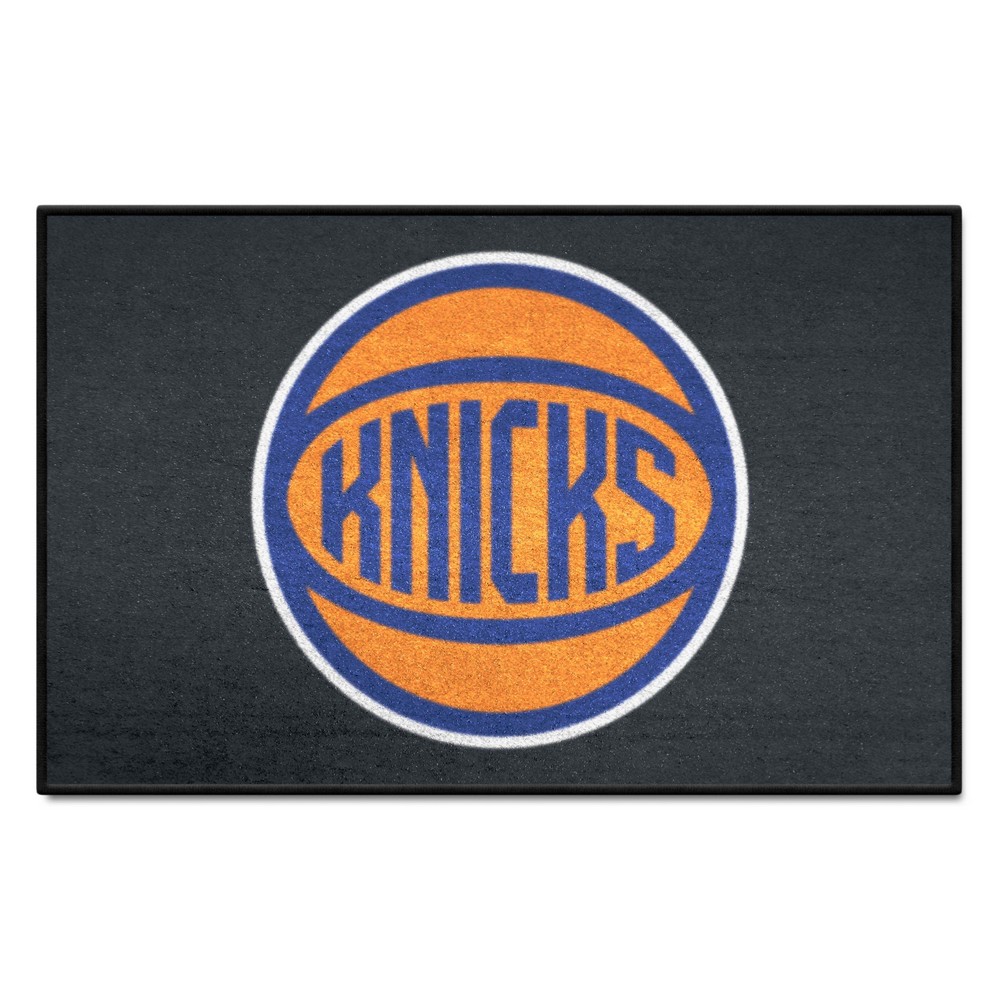 | New York Knicks Starter Mat Accent Rug - 19in. x 30in. 9 Ounce, 100 % Nylon Face Recycled vinyl backing for a durable and longer-lasting product Machine made and tufted in the USA Non-skid backing with serged borders for added durability Machine washable; vacuum regularly and spot clean for any easy and quick clean Officially licensed and chromojet-printed in true team colors for vibrant, lasting color NBA - New York Knicks in New York NBA National Basketball Association |