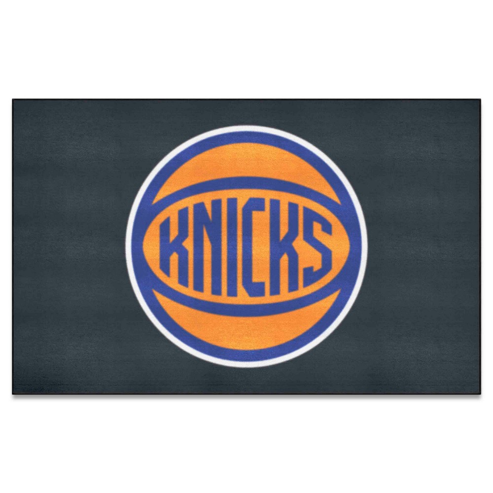 | New York Knicks Ulti-Mat Rug - 5ft. x 8ft. 9 Ounce, 100 % Nylon Face Recycled vinyl backing for a durable and longer-lasting product Machine made and tufted in the USA Non-skid backing with serged borders for added durability Machine washable; vacuum regularly and spot clean for any easy and quick clean Officially licensed and chromojet-printed in true team colors for vibrant, lasting color NBA - New York Knicks in New York NBA National Basketball Association |