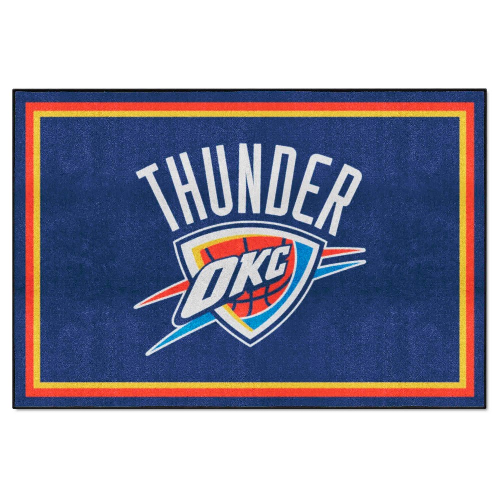 | Oklahoma City Thunder 5ft. x 8 ft. Plush Area Rug 23.5 oz., 100% Nylon Face Latex backing for a durable and longer-lasting product Machine made in the USA Non-skid backing to ensure stability Vacuum regularly and spot clean Chromojet-printed in true team colors NBA - Oklahoma City Thunder in Oklahoma NBA National Basketball Association |