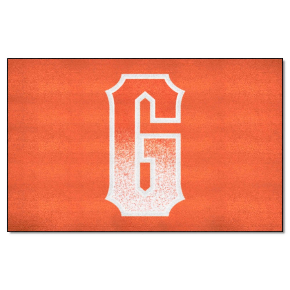 | San Francisco Giants Ulti-Mat Rug - 5ft. x 8ft. 9 Ounce, 100 % Nylon Face Recycled vinyl backing for a durable and longer-lasting product Machine made and tufted in the USA Non-skid backing with serged borders for added durability Machine washable; vacuum regularly and spot clean for any easy and quick clean Officially licensed and chromojet-printed in true team colors for vibrant, lasting color MLB - San Francisco Giants in California MLB Major League Baseball |