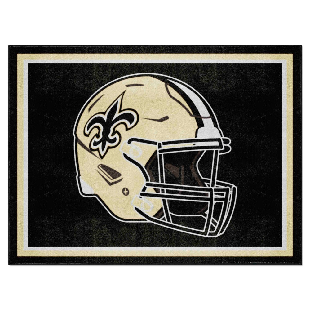 | New Orleans Saints 8ft. x 10 ft. Plush Area Rug 23.5 oz., 100% Nylon Face Latex backing for a durable and longer-lasting product Machine made in the USA Non-skid backing to ensure stability Vacuum regularly and spot clean Chromojet-printed in true team colors NFL - New Orleans Saints in Louisiana NFL National Football League |