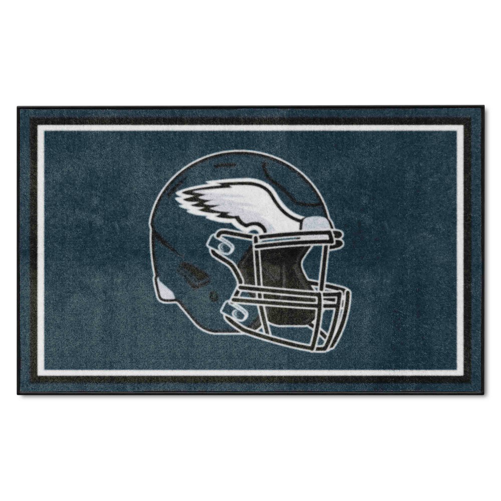 | Philadelphia Eagles 4ft. x 6ft. Plush Area Rug 23.5 oz., 100% Nylon Face Latex backing for a durable and longer-lasting product Machine made in the USA Non-skid backing to ensure stability Vacuum regularly and spot clean Chromojet-printed in true team colors NFL - Philadelphia Eagles in Pennsylvania NFL National Football League |