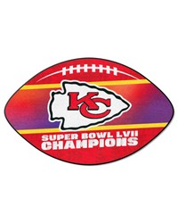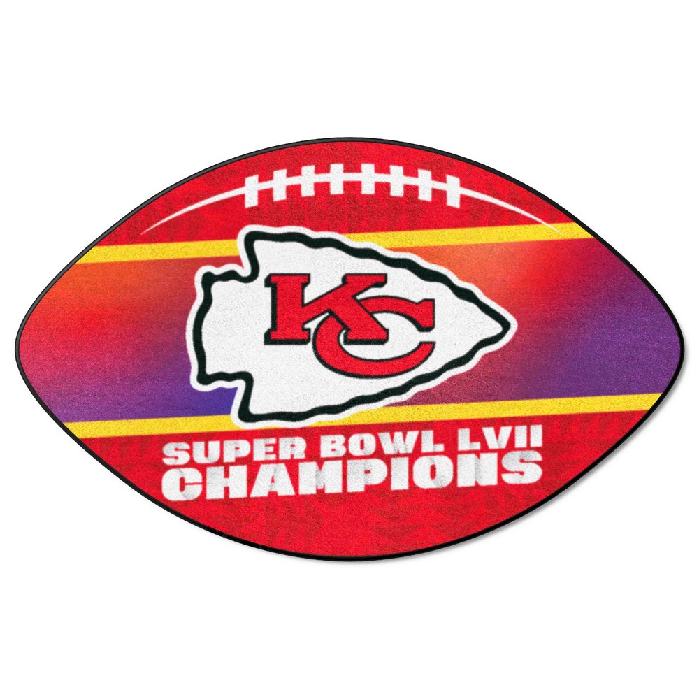| Kansas City Chiefs Super Bowl LVII Football Mat 9 Ounce, 100 % Nylon Face Recycled vinyl backing for a durable and longer-lasting product Machine made and tufted in the USA Non-skid backing with taped borders for added durability Machine washable; vacuum regularly and spot clean for any easy and quick clean Officially licensed and chromojet-printed in true team colors for vibrant, lasting color NFL - Kansas City Chiefs in Missouri NFL National Football League |