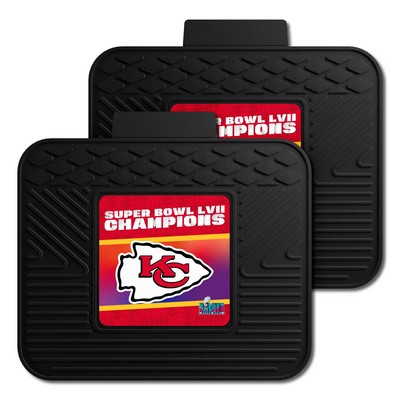 | Kansas City Chiefs Super Bowl LVII 2 Utility Mats Deep pockets catch and hold dirt and water as the ribs scrap and clean the bottoms of shoes Universal size to fit all vehicle sizes 100% heavy-duty vinyl adds durability and longer life Nibbed backing to keep from skidding Machine-made in the USA 3-D logo molded in true team colors NFL - Kansas City Chiefs in Missouri WARNING: This product can expose you to chemicals including, DINP, which is known to the State of California to casue cancer. For more information, go to www.P65Warnings.ca.gov NFL National Football League |