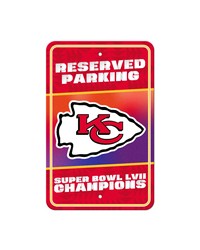 | Kansas City Chiefs Super Bowl LVII Parking Sign Plastic construct is durable and lightweight 2 pre-drilled holes for easy hanging Printed with outstanding EFI ink for durability and vibrant coloring Great for indoor or outdoor Made in the USA Officially Licensed NFL - Kansas City Chiefs in Missouri NFL National Football League |