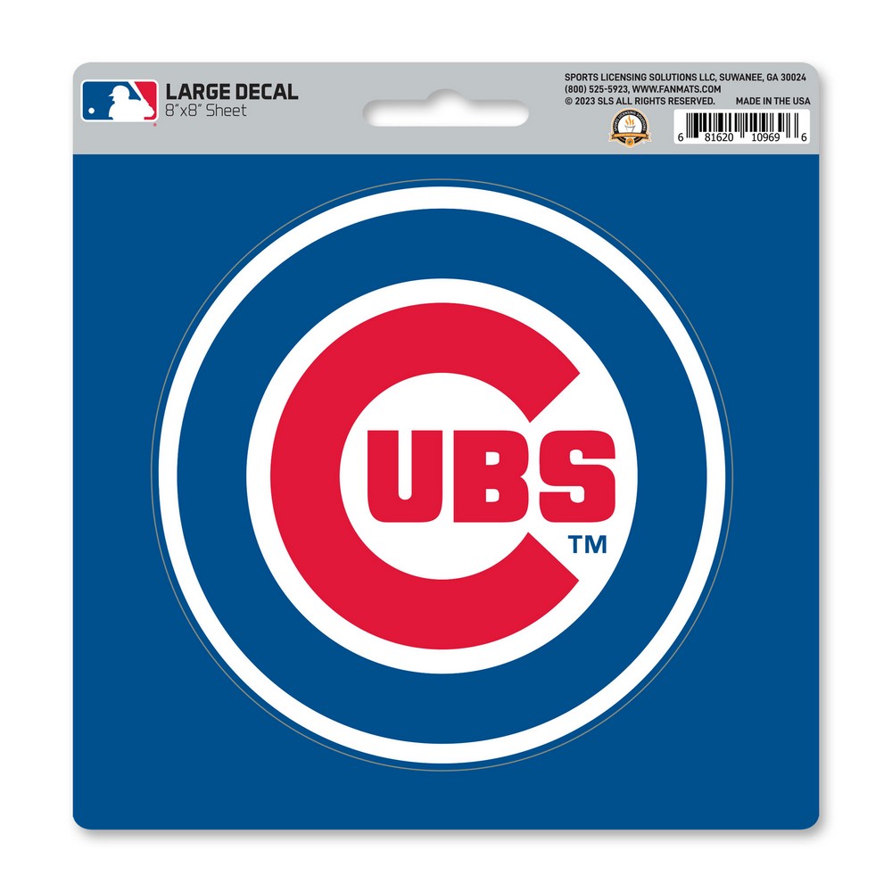 | Chicago Cubs Large Decal Sticker 1 Large decal, approximately 8'x8' Full, true team color UV resistant for outstanding durability Die-cut, premium vinyl material Perfect for any hard surface Officially Licensed MLB - Chicago Cubs in Illinois MLB Major League Baseball |
