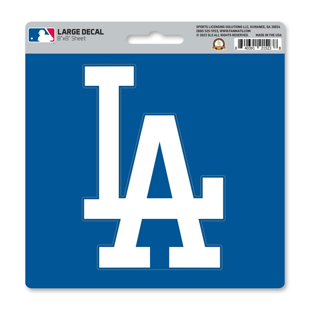 | Los Angeles Dodgers Large Decal Sticker 1 Large decal, approximately 8'x8' Full, true team color UV resistant for outstanding durability Die-cut, premium vinyl material Perfect for any hard surface Officially Licensed MLB - Los Angeles Dodgers in California MLB Major League Baseball |
