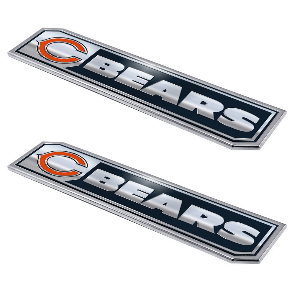 | Chicago Bears 2 Piece Heavy Duty Aluminum Embossed Truck Emblem Set Comes in a 2-Pack Set Rectangular in Shape with Unique Angles Designed to Compliment Any Truck or Car Features Team Colored Logo and Raised Team Wordmark Easy application with full auto adhesive backing Made with corrosion resistant aluminum Approximately 1.75in x 8.25in NFL - Chicago Bears in Illinois NFL National Football League |
