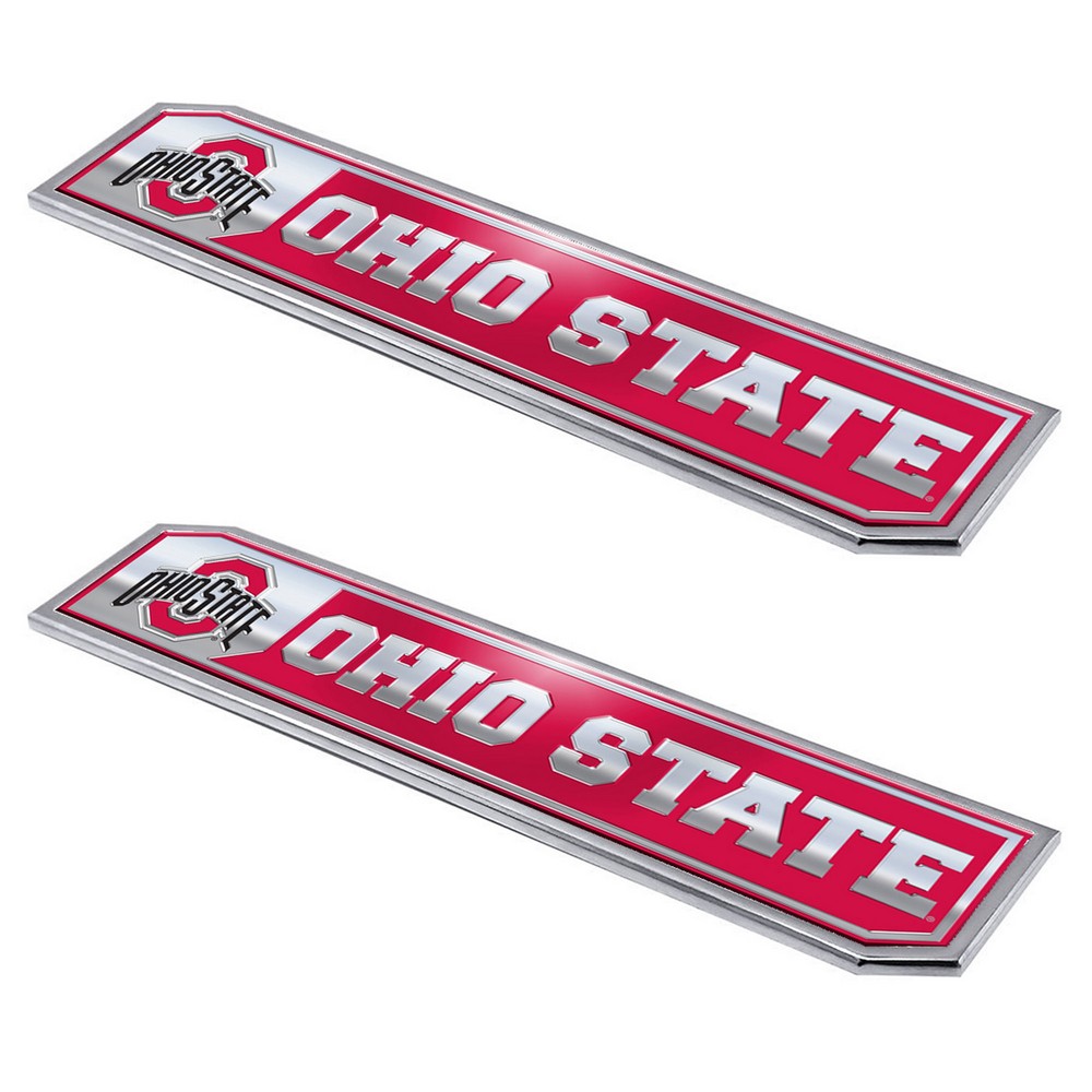 | Ohio State Buckeyes 2 Piece Heavy Duty Aluminum Embossed Truck Emblem Set Comes in a 2-Pack Set Rectangular in Shape with Unique Angles Designed to Compliment Any Truck or Car Features Team Colored Logo and Raised Team Wordmark Easy application with full auto adhesive backing Made with corrosion resistant aluminum Approximately 1.75in x 8.25in Ohio State University in Ohio |