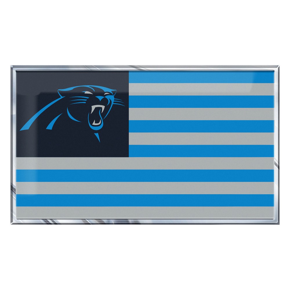 | Carolina Panthers State Flag Aluminum Embossed Emblem Made with corrosion resistant aluminum Dynamic 3D emboss and vibrant color finish Easy application with full auto adhesive backing UV Protected so it will last as long as you want Can be removed without damaging paint or surface Approximately 3.5in x 2in NFL - Carolina Panthers in North Carolina NFL National Football League |