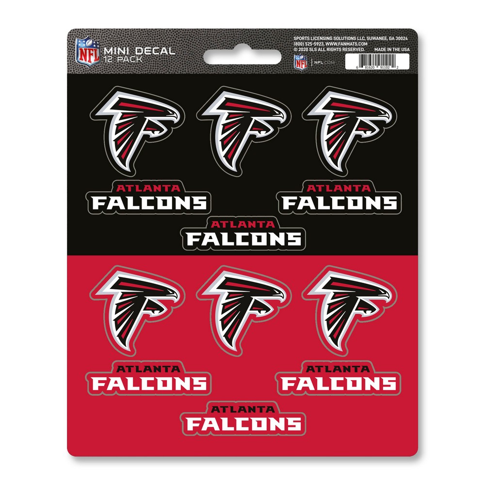 | Atlanta Falcons 12 Count Mini Decal Sticker Pack Includes12 small size decals on a 5in x 6in sheet Adhesive decals are die-cut to shape Printed on premium vinyl material UV resistant lamination for outstanding durability Great for cars, laptops, coolers and other hard surfaces Approximately 5in x 6.25in NFL - Atlanta Falcons in Georgia NFL National Football League |