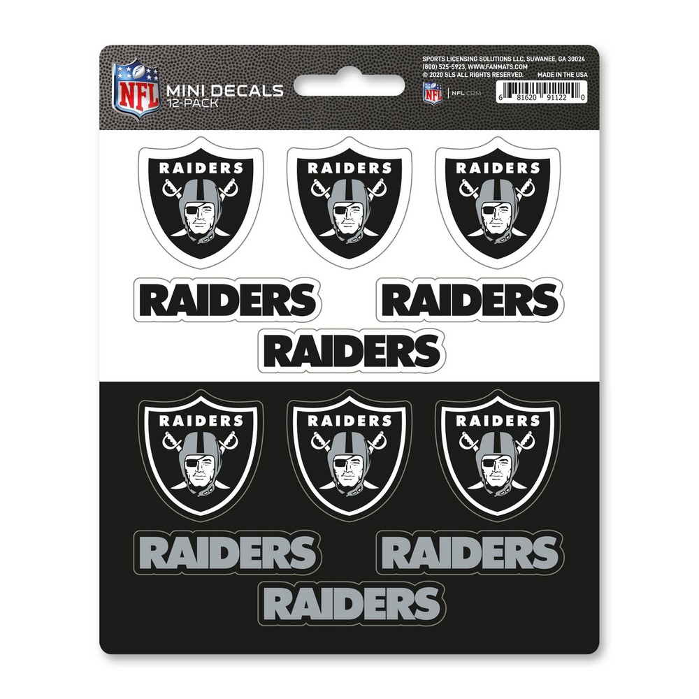 | Las Vegas Raiders 12 Count Mini Decal Sticker Pack Includes12 small size decals on a 5in x 6in sheet Adhesive decals are die-cut to shape Printed on premium vinyl material UV resistant lamination for outstanding durability Great for cars, laptops, coolers and other hard surfaces Approximately 5in x 6.25in NFL - Las Vegas Raiders in Nevada NFL National Football League |