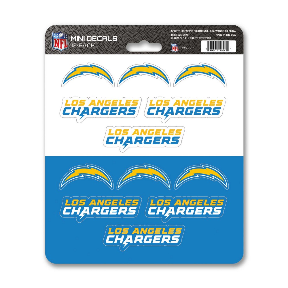 | Los Angeles Chargers 12 Count Mini Decal Sticker Pack Includes12 small size decals on a 5in x 6in sheet Adhesive decals are die-cut to shape Printed on premium vinyl material UV resistant lamination for outstanding durability Great for cars, laptops, coolers and other hard surfaces Approximately 5in x 6.25in NFL - Los Angeles Chargers in California NFL National Football League |