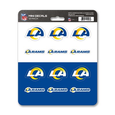 | Los Angeles Rams 12 Count Mini Decal Sticker Pack Includes12 small size decals on a 5in x 6in sheet Adhesive decals are die-cut to shape Printed on premium vinyl material UV resistant lamination for outstanding durability Great for cars, laptops, coolers and other hard surfaces Approximately 5in x 6.25in NFL - Los Angeles Rams in California NFL National Football League |