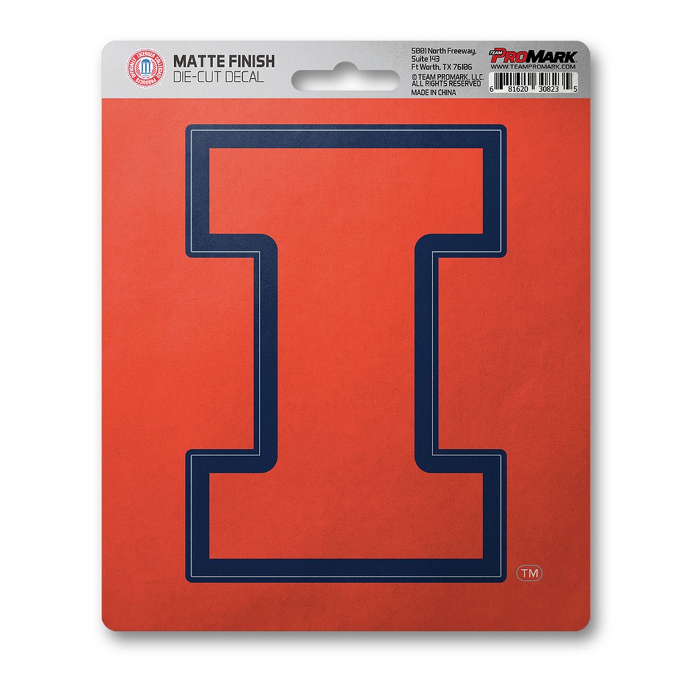 | Illinois Illini Matte Decal Sticker Includes 1 large decal Adhesive decals are die-cut to shape Printed on premium vinyl material UV resistant lamination for outstanding durability Great for cars, laptops, coolers and other hard surfaces Approximately 5in x 6.25in University of Illinois in Illinois |