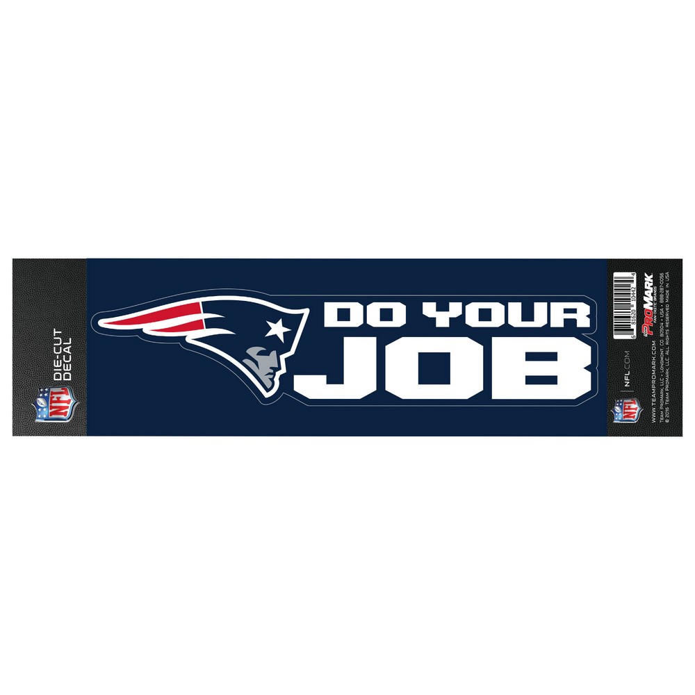 | New England Patriots 2 Piece Team Slogan Decal Sticker Set, "DO YOUR JOB" Decal pack includes 1 slogan and 1 logo decal Adhesive decals are die-cut to shape Printed on premium vinyl material UV resistant lamination for outstanding durability Great for cars, laptops, coolers and other hard surfaces Approximately 5in x 6.25in NFL - New England Patriots in Massachusetts NFL National Football League |