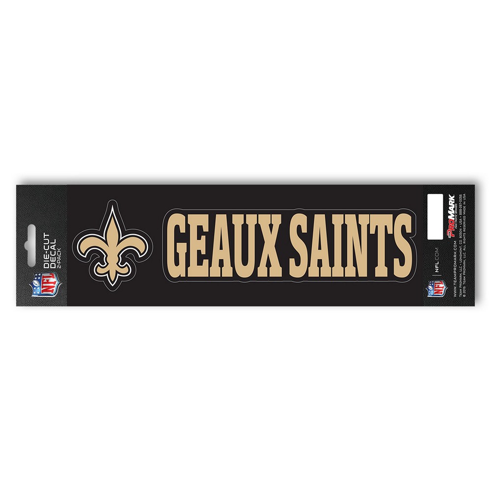 | New Orleans Saints 2 Piece Team Slogan Decal Sticker Set Decal pack includes 1 slogan and 1 logo decal Adhesive decals are die-cut to shape Printed on premium vinyl material UV resistant lamination for outstanding durability Great for cars, laptops, coolers and other hard surfaces Approximately 5in x 6.25in NFL - New Orleans Saints in Louisiana NFL National Football League |
