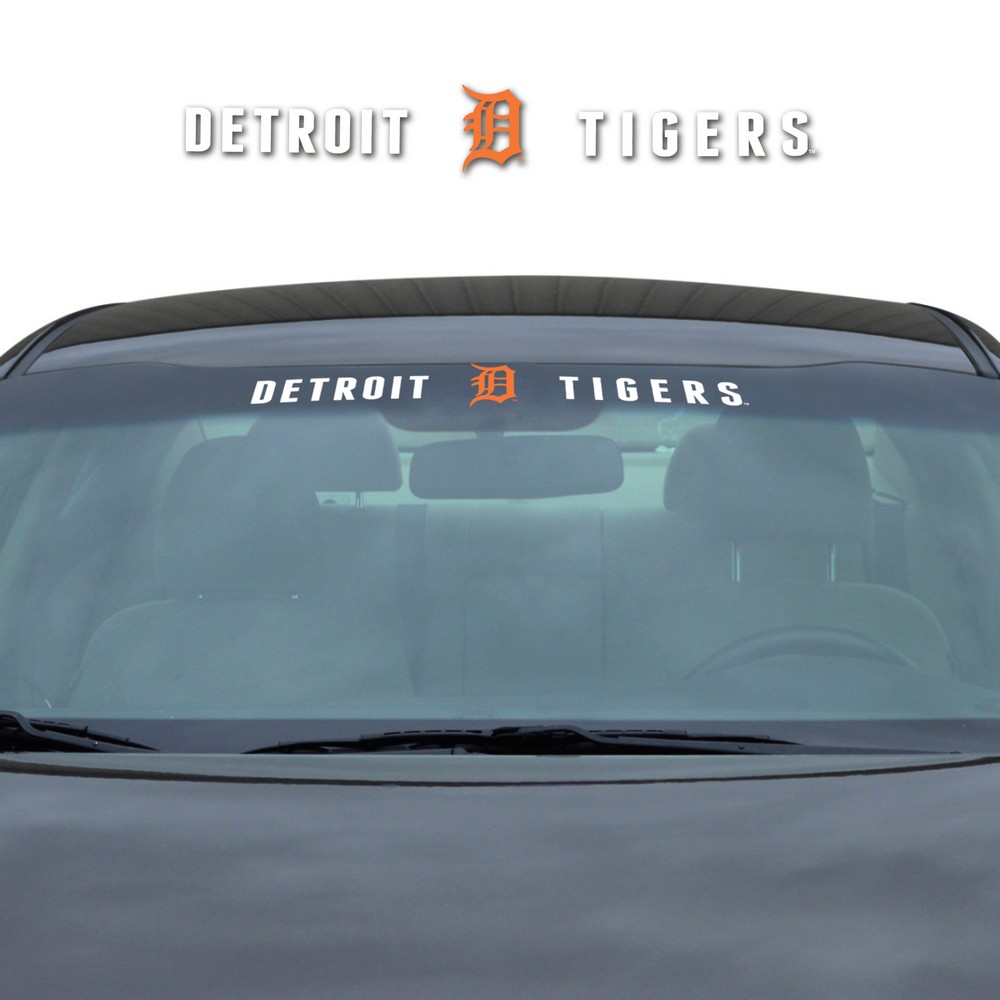 | Detroit Tigers Sun Stripe Windshield Decal 3.25 in. x 34 in. Premium die cut vinyl decal Features full color team logo and wordmark Designed for a perfect fit on curved windshields Easy to install and remove Officially Licensed Approximately 34in x 3.5in MLB - Detroit Tigers in Michigan MLB Major League Baseball |