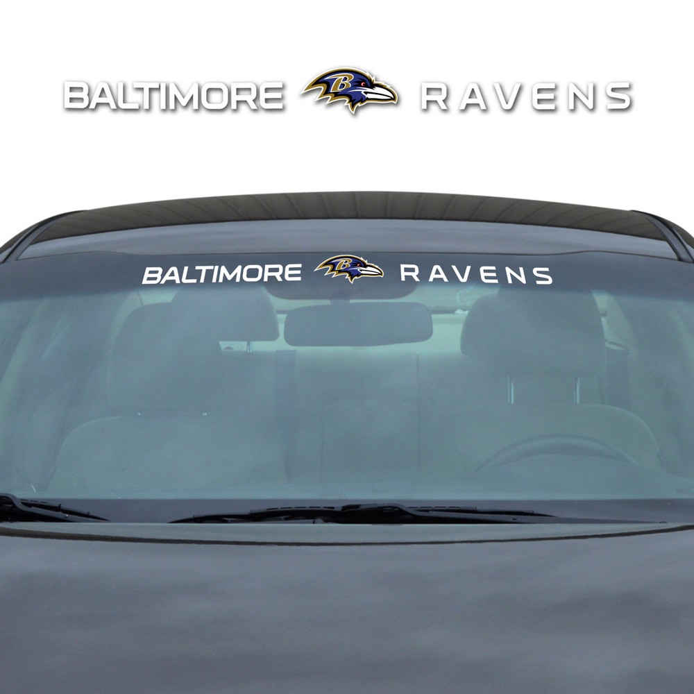 | Baltimore Ravens Sun Stripe Windshield Decal 3.25 in. x 34 in. Premium die cut vinyl decal Features full color team logo and wordmark Designed for a perfect fit on curved windshields Easy to install and remove Officially Licensed Approximately 34in x 3.5in NFL - Baltimore Ravens in Maryland NFL National Football League |