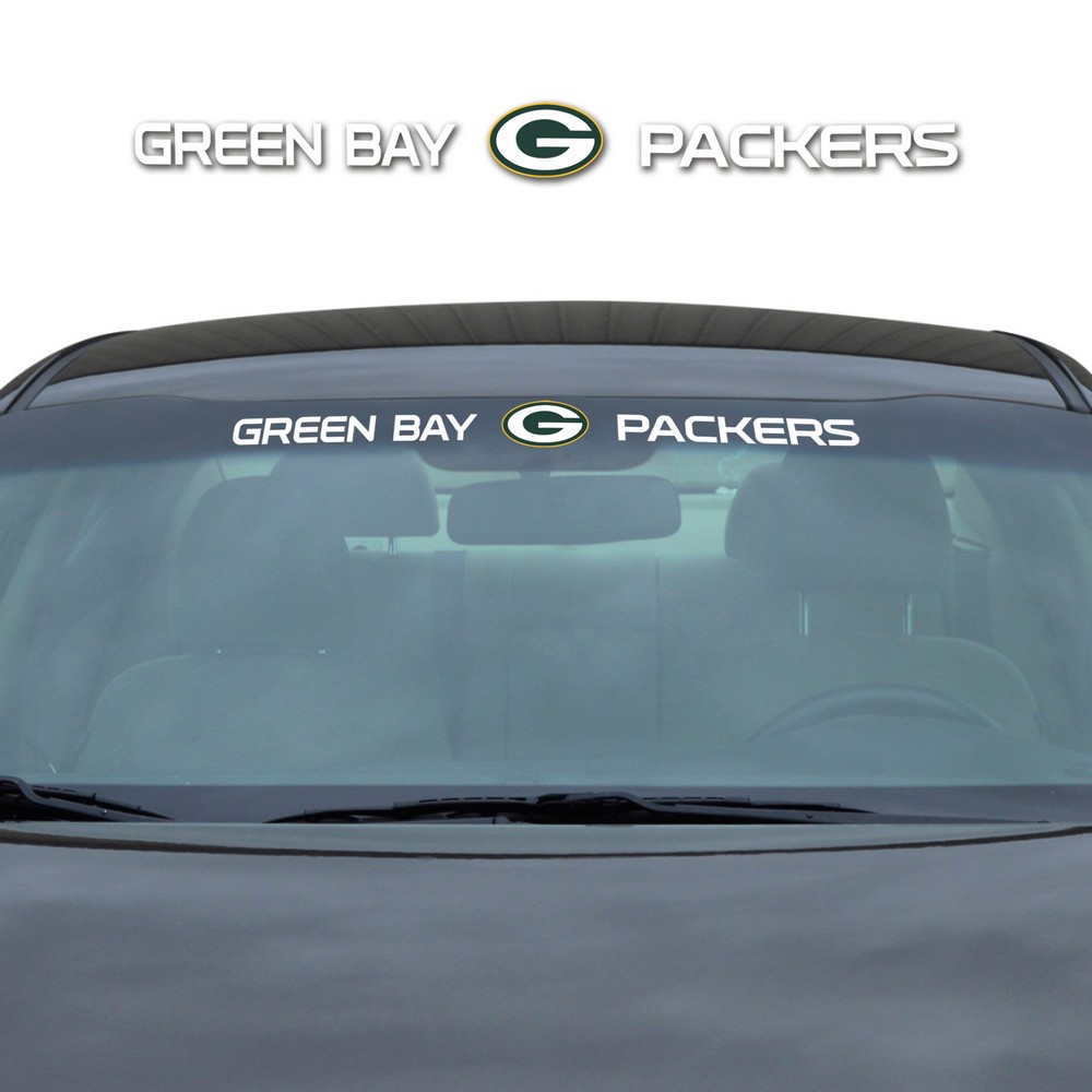 | Green Bay Packers Sun Stripe Windshield Decal 3.25 in. x 34 in. Premium die cut vinyl decal Features full color team logo and wordmark Designed for a perfect fit on curved windshields Easy to install and remove Officially Licensed Approximately 34in x 3.5in NFL - Green Bay Packers in Wisconsin NFL National Football League |