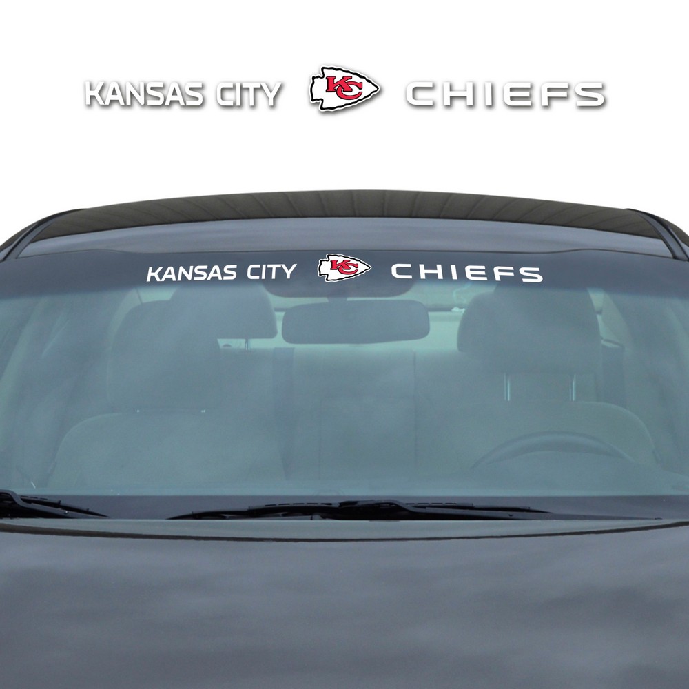 | Kansas City Chiefs Sun Stripe Windshield Decal 3.25 in. x 34 in. Premium die cut vinyl decal Features full color team logo and wordmark Designed for a perfect fit on curved windshields Easy to install and remove Officially Licensed Approximately 34in x 3.5in NFL - Kansas City Chiefs in Missouri NFL National Football League |