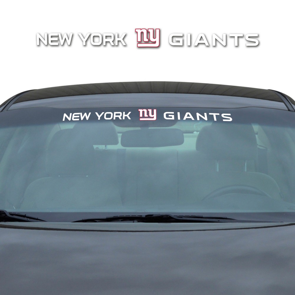 | New York Giants Sun Stripe Windshield Decal 3.25 in. x 34 in. Premium die cut vinyl decal Features full color team logo and wordmark Designed for a perfect fit on curved windshields Easy to install and remove Officially Licensed Approximately 34in x 3.5in NFL - New York Giants in New Jersey NFL National Football League |